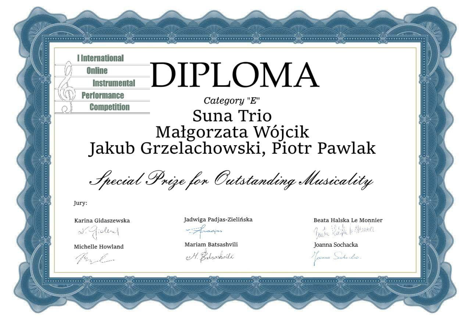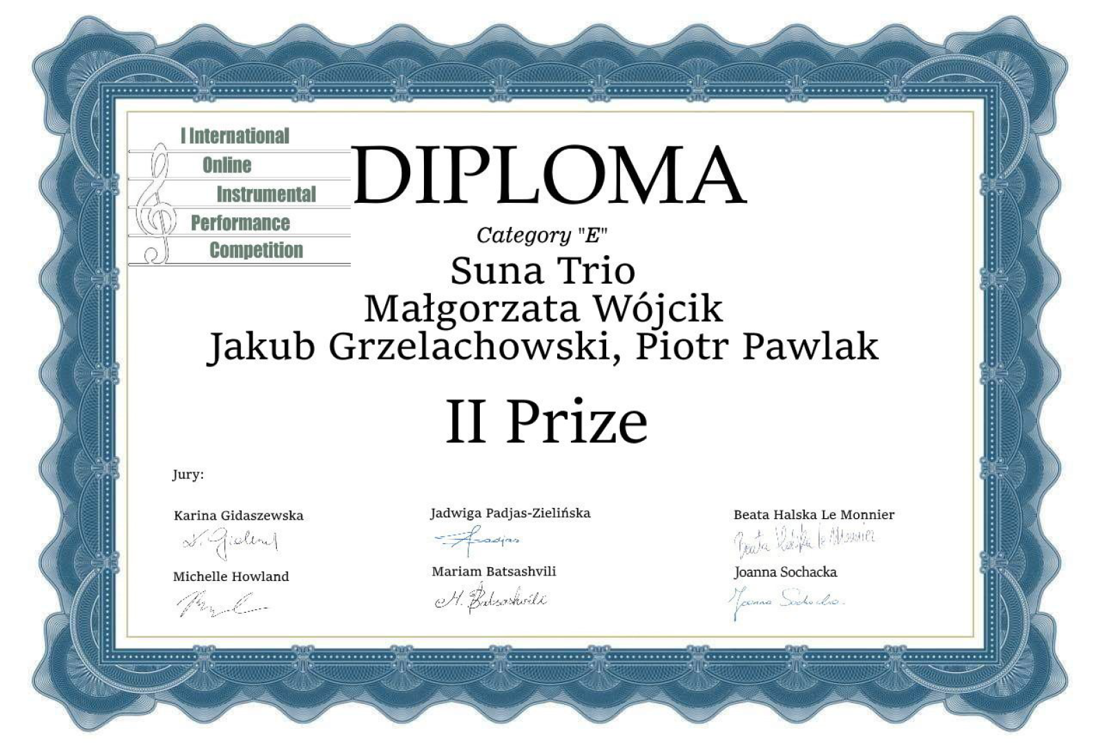 - Trio Suna w składzie: Małgorzata Wójcik – skrzypce, Jakub Grzelachowski – wiolonczela, Piotr Pawlak – fortepian z klasy kameralistyki prof. dr hab. Anny Prabuckiej-Firlej i dra hab. Roberta Kwiatkowskiego zdobyło III NAGRODĘ w sekcji V, kat. H;
