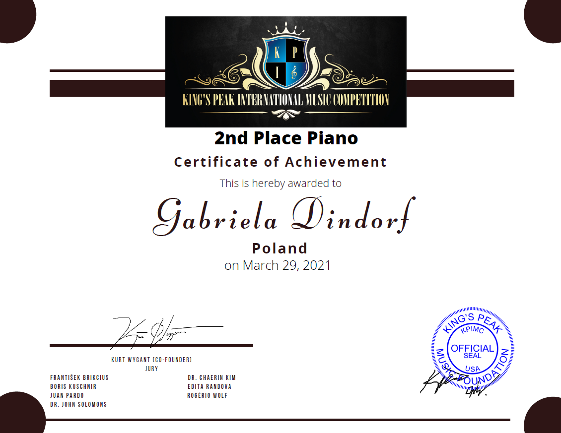 Studentki aMuz zostały laureatkami King’s Peak International Music Competition online w Stanach Zjednoczonych (14.08.2021):