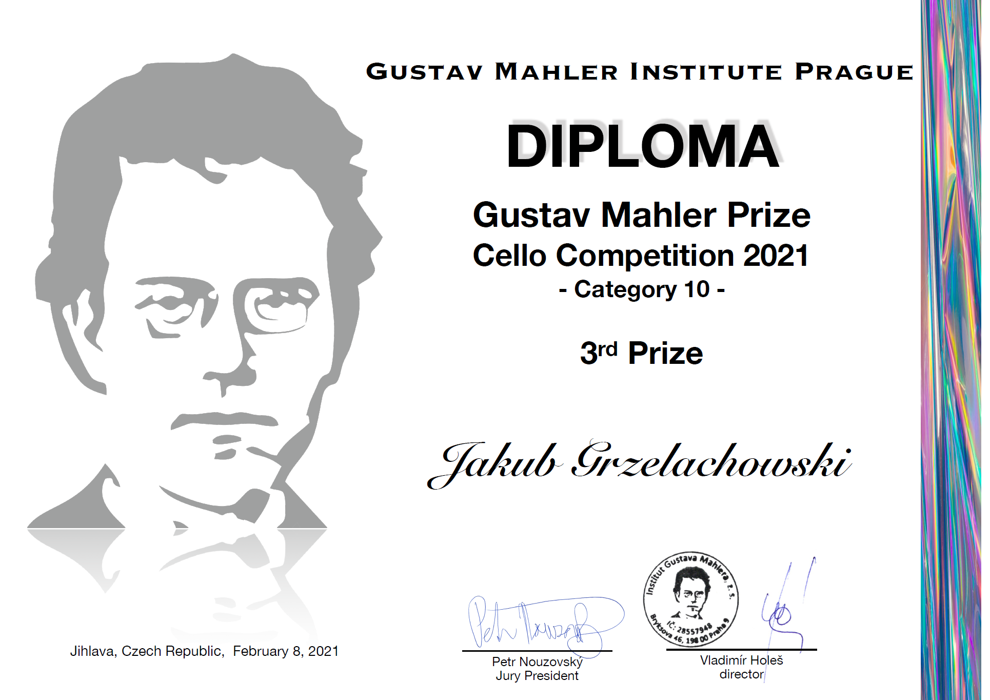 - Jakub Grzelachowski (I rok studiów II st.) z klasy wiolonczeli dra hab. Błażeja Golińskiego zdobył III NAGRODĘ w sekcji II, kat. D;
