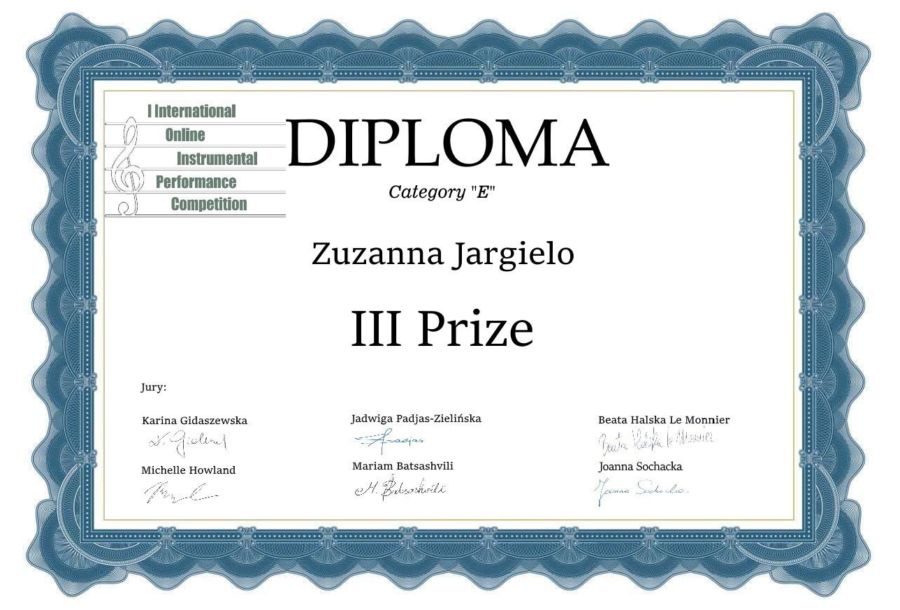 - Zuzanna Jargieło (I rok studiów I st.) z klasy fortepianu dr hab. Elżbiety Pasierowskiej otrzymała II NAGRODĘ w kategorii fortepian solo,