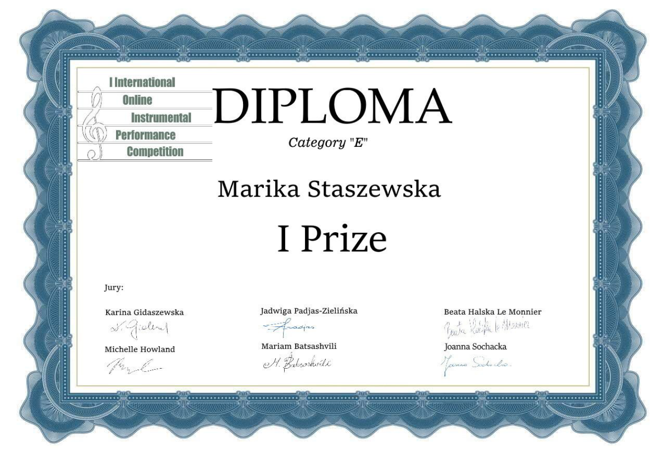 Marta Misztal (II rok studiów II st.) z klasy fortepianu dr hab. Elżbiety Pasierowskiej oraz mgra Mikołaja Sikały otrzymała III NAGRODĘ w kat. fortepian solo na International Piano Competition „Paderewski in Memoriam” w Nowym Sączu (20-29.05.2021).