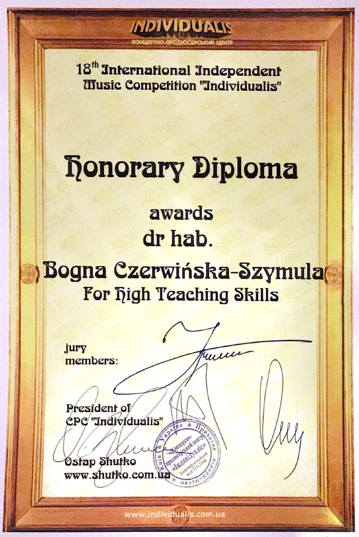 Jury postanowiło także wyróżnić pianistów towarzyszących uczestnikom. DYPLOMY ZA WYJĄTKOWE ARTYSTYCZNE WYKONANIE PARTII FORTEPIANU otrzymali: prof. dr hab. Anna Prabucka-Firlej, dr hab. Bogumiła Weretka-Bajdor, dr Dominika Glapiak-Piłasiewicz, dr Magdalena Ochlik-Jankowska, mgr Aleksandra Furmańska, mgr Aleksandra Mozgiel-Medyńska, mgr Piotr Pawlak.