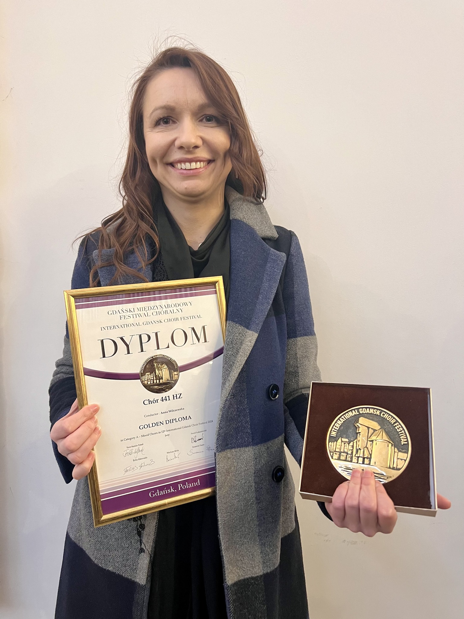 Chór „441 Hz” pod dyr. Anny Wilczewskiej, pedagoga aMuz, zdobył ZŁOTY DYPLOM z najwyższą punktacją oraz ZŁOTY MEDAL dla najlepszego chóru w kategorii A – chóry mieszane na 12. Międzynarodowym Gdańskim Festiwalu Chóralnym w Gdańsku (15-17.03.2024).