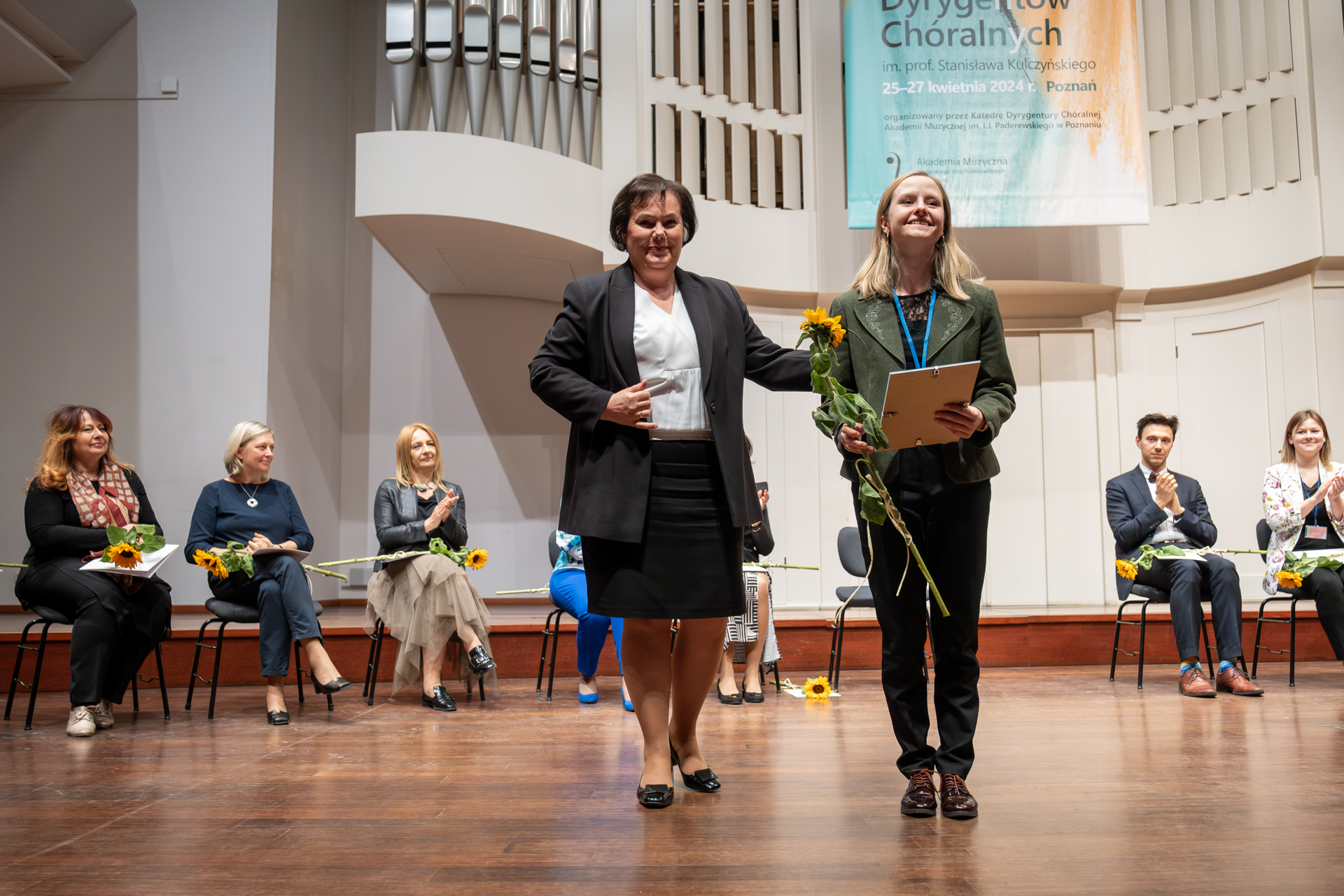 Weronika Brakoniecka (II rok studiów II st.) z klasy dyrygentury chóralnej prof. dra hab. Marka Rocławskiego zdobyła I WYRÓŻNIENIE i NAGRODĘ SPECJALNĄ ZA NAJLEPSZĄ TECHNIKĘ DYRYGENCKĄ (ufundowaną przez absolwentów prof. Stanisława Kulczyńskiego, prof. Magdalenę Wdowicką-Mackiewicz i prof. Przemysława Pałkę) na XIX Ogólnopolskim Konkursie Dyrygentów Chóralnych im. prof. Stanisława Kulczyńskiego w Poznaniu (25-27.04.2024). Organizatorem była Akademia Muzyczna im. Ignacego Jana Paderewskiego w Poznaniu.