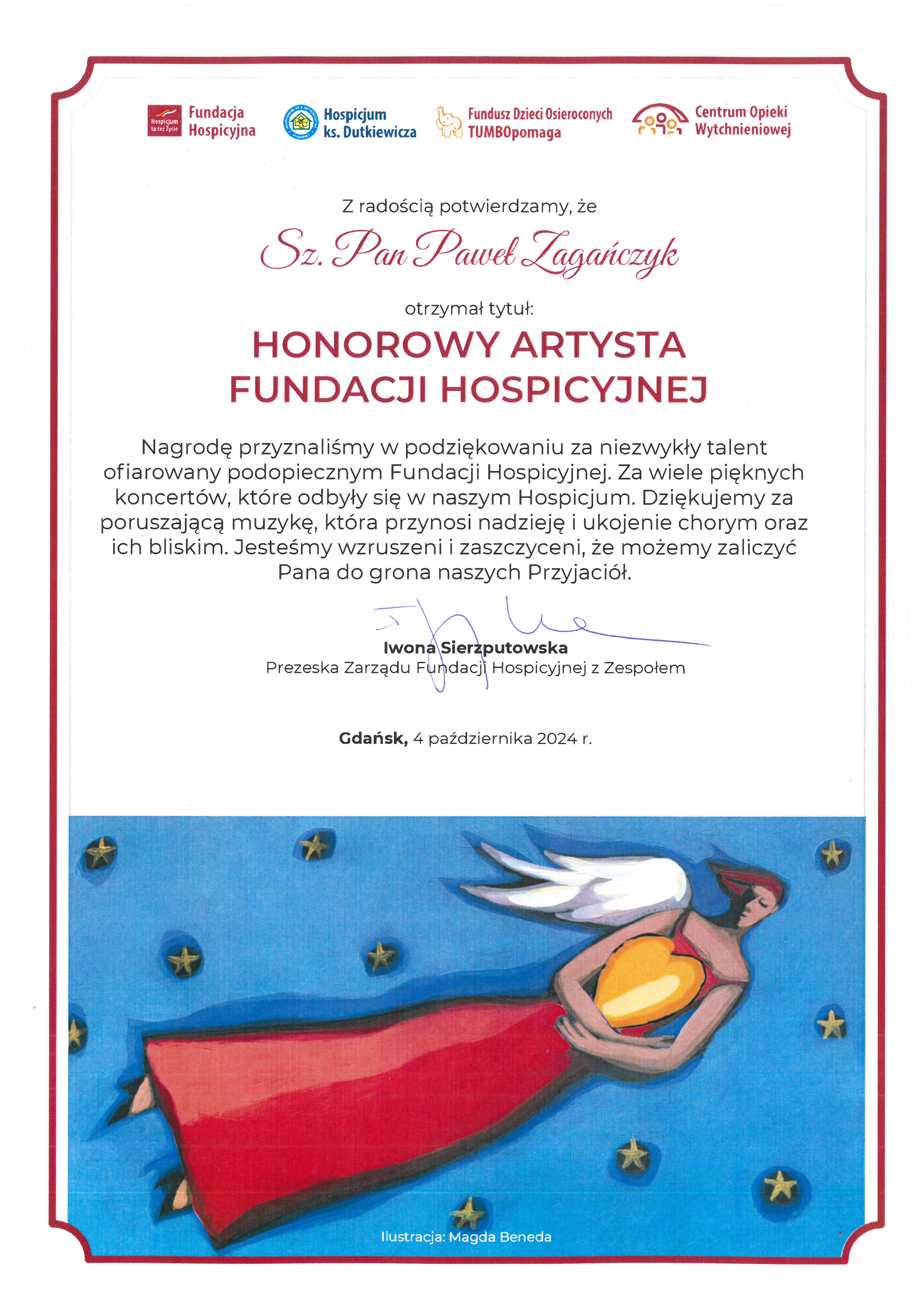 Dnia 4 października 2024 r. w Europejskim Centrum Solidarności podczas XIII Gali wręczenia nagród dla Honorowych Wolontariuszy i Honorowych Filantropów Fundacji Hospicyjnej przyznane zostały Bursztynowe Dźwigi. Wśród uhonorowanych są osoby prywatne, artyści, firmy, szkoły, instytucje oraz osoby związane z mediami. Nagrody zostały ufundowane przez Prezydent Miasta Gdańska Aleksandra Dulkiewicz, która objęła galę patronatem honorowym.