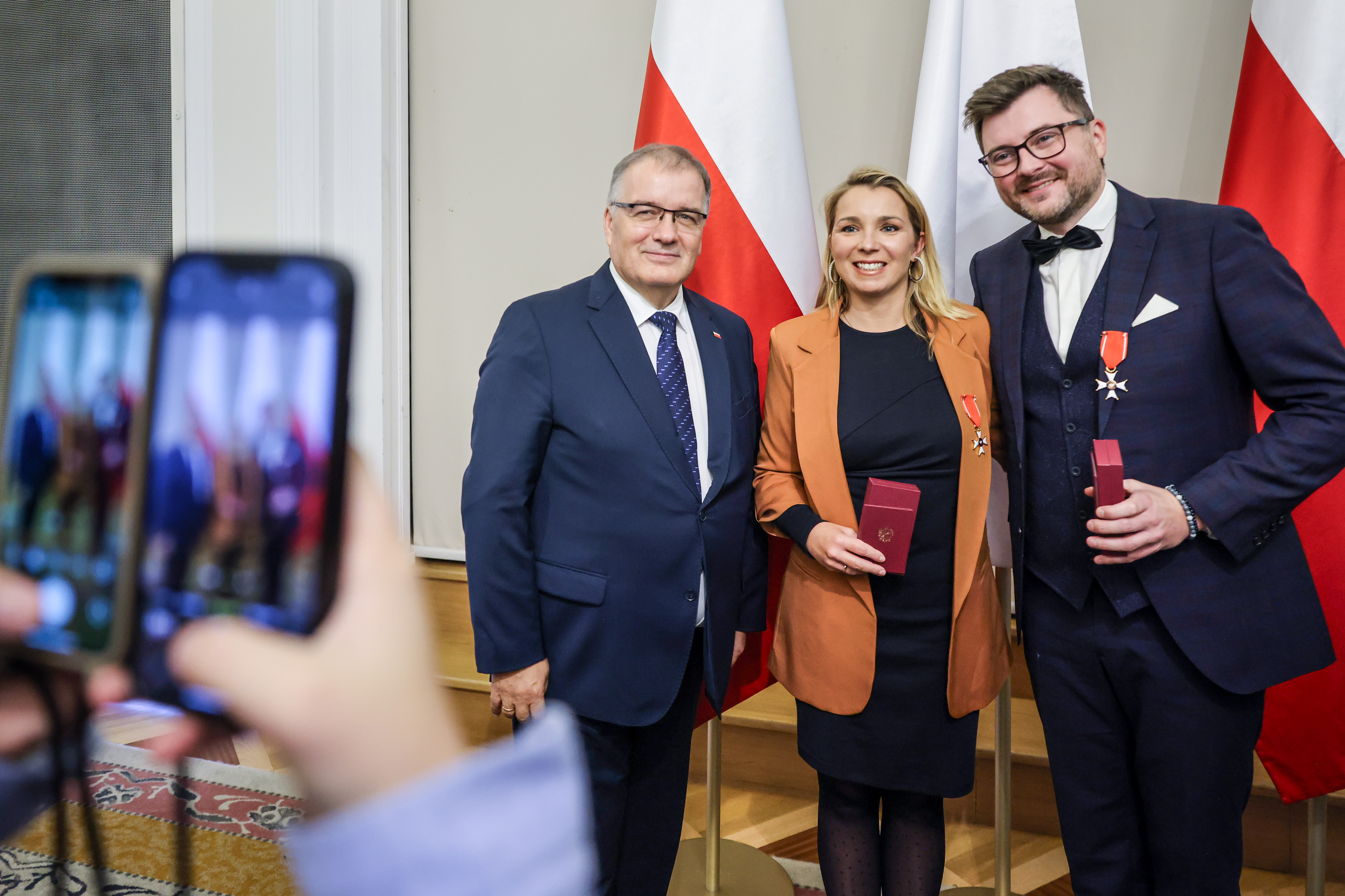 Prof. dr hab. Agata Kielar-Długosz oraz prof. dr Łukasz Długosz, pedagodzy klasy fletu aMuz, zostali odznaczeni KRZYŻEM KAWALERSKIM ORDERU ODRODZENIA POLSKI za wybitne zasługi dla kultury polskiej. Odznaczenia państwowe, nadane przez Prezydenta Rzeczypospolitej Polskiej Andrzeja Dudę w 2022 roku, zostały im wręczone przez Ministra Andrzeja Derę, Sekretarza Stanu w Kancelarii Prezydenta RP, podczas uroczystości w Belwederze w dniu 28 października 2024 roku.