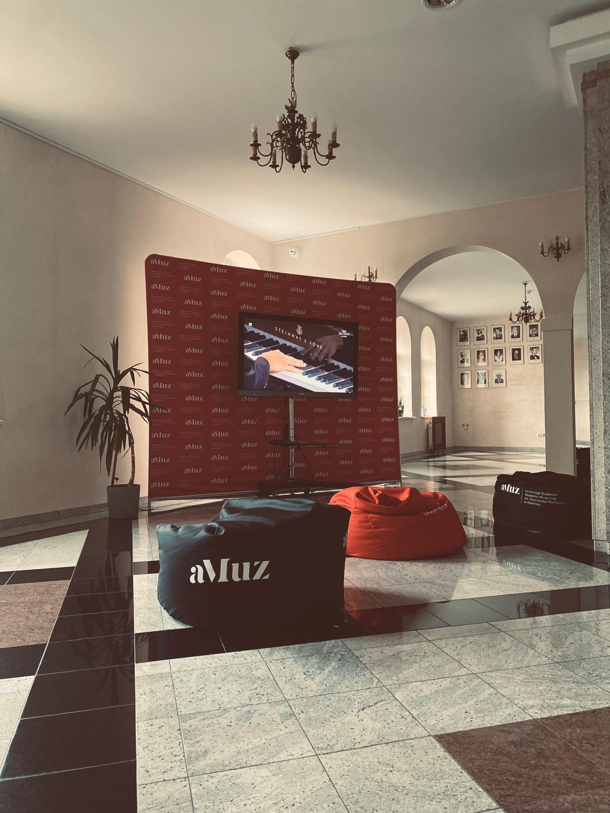 nie musicie siedzieć w domu we foyer budynku żółtego, na ekranach wyświetlana jest transmisja Konkursu Chopinowskiego!
