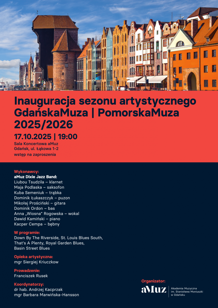Sezon artystyczny wydarzeń cyklicznych GdańskaMuza i PomorskaMuza otworzył koncert zespołu aMuz Dixie Jazz Band specjalizujący się w jazzowym repertuarze z lat 20. i 30. XX wieku. Formacja prowadzona jest przez mgra Sergieja Kriuczkowa, który z pasją rozwija w młodych artystach miłość do jazzu i scenicznej improwizacji.