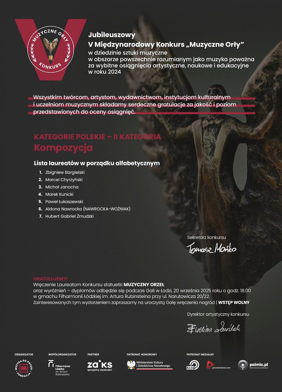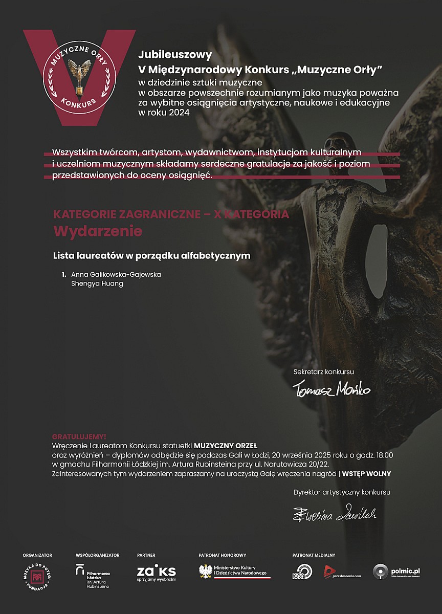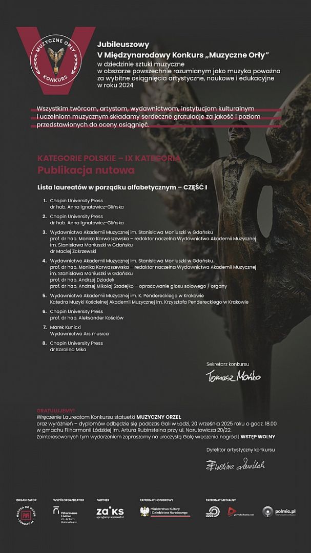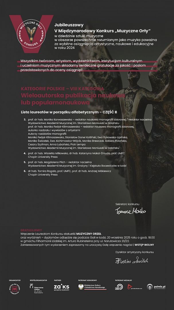 w dniu 7 września 2025 r. członkowie Kapituły V edycji prestiżowego Międzynarodowego Konkursu „MUZYCZNE ORŁY” w składzie: