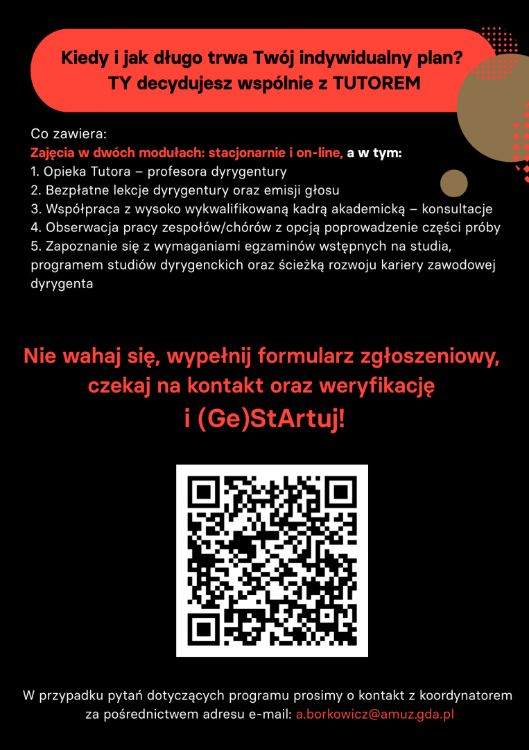 W przypadku pytań dotyczących programu, prosimy o kontakt z koordynatorem za pośrednictwem adresu e-mail: a.borkowicz@amuz.gda.pl.