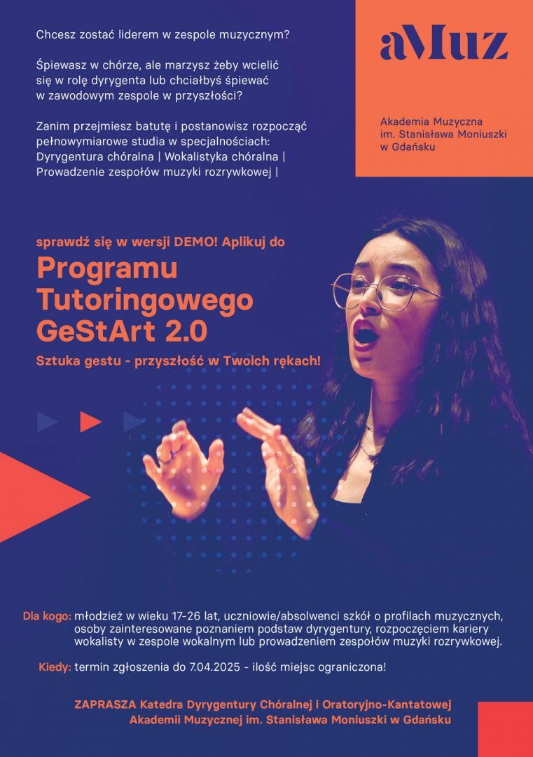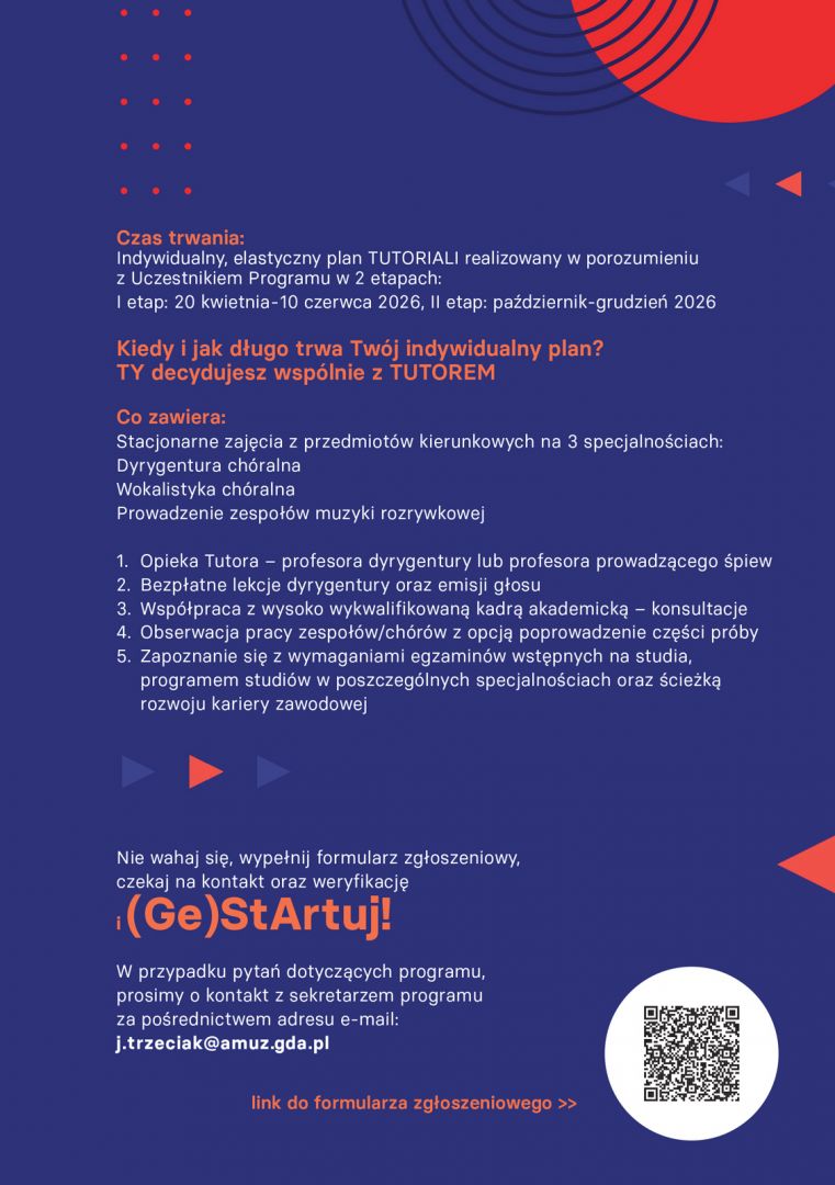 - Opieka Tutora – profesora dyrygentury lub profesora prowadzącego śpiew
