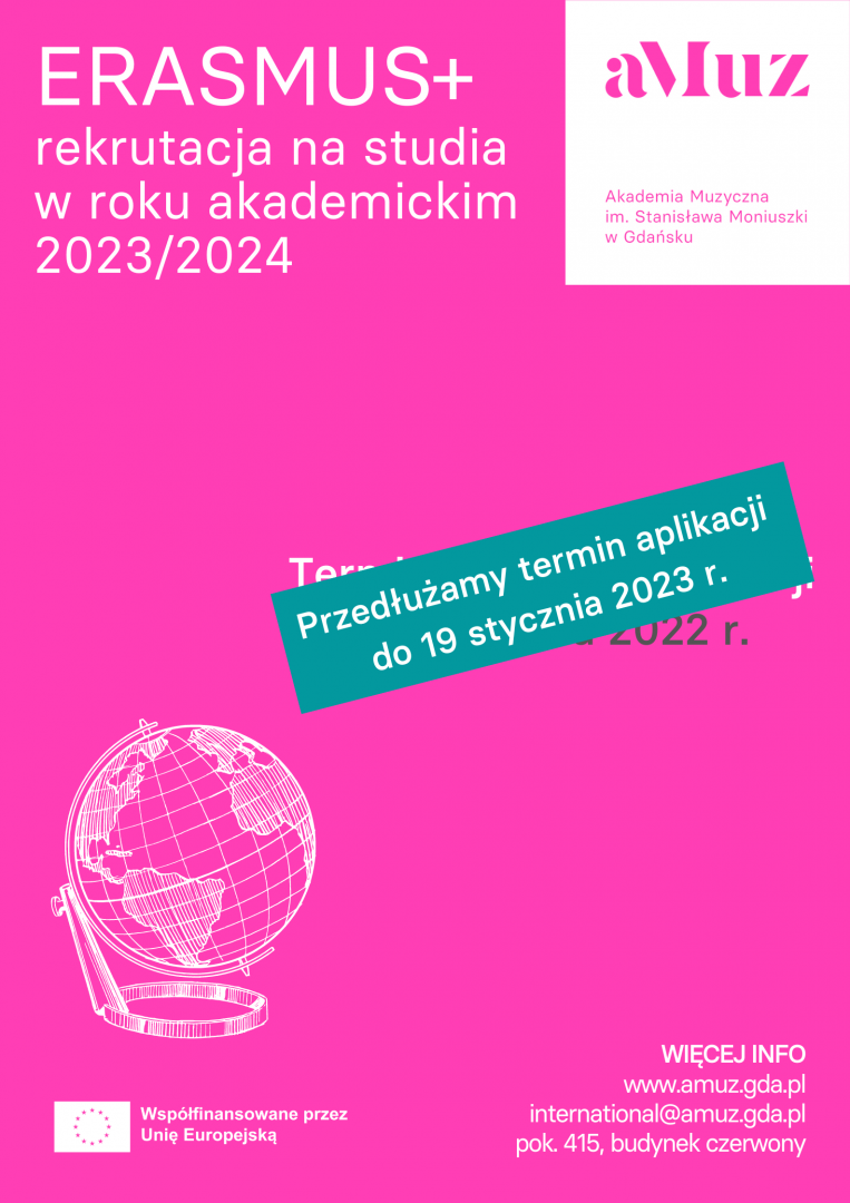 Termin składania wniosków upływa: 19.01.2023 r. Kompletne dokumenty w oryginale należy składać w Biurze Współpracy Międzynarodowej (pok. 415, budynek czerwony).