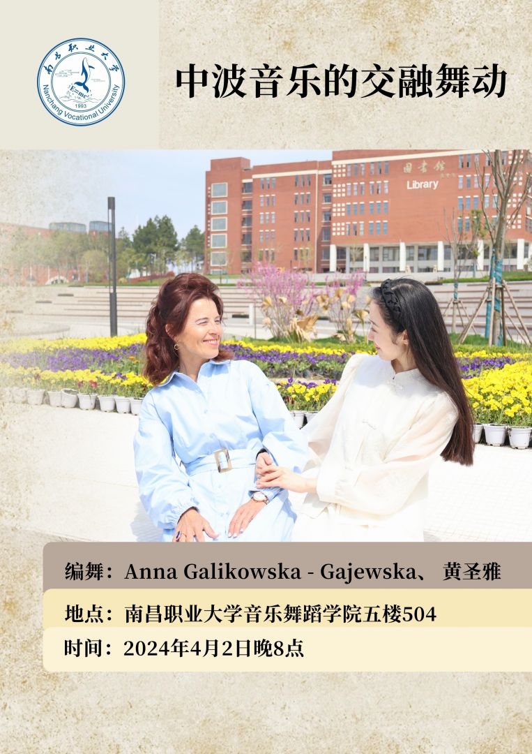 Dnia 2 kwietnia 2024 roku o godz. 20:00 w College of Music and Dance w Nanchang Vocational University (Nanchang – stolica prowincji Jiangxi w Chinach) odbył się wyjątkowy koncert autorskich choreografii muzyki – prof. dr hab. Anny Galikowskiej-Gajewskiej, Kierownika Katedry Rytmiki i Improwizacji Fortepianowej aMuz, oraz mgr Shengyi Huang, absolwentki aMuz specjalności rytmika, a obecnie uczestniczki stażu artystycznego „Wokół metody Rytmiki”.