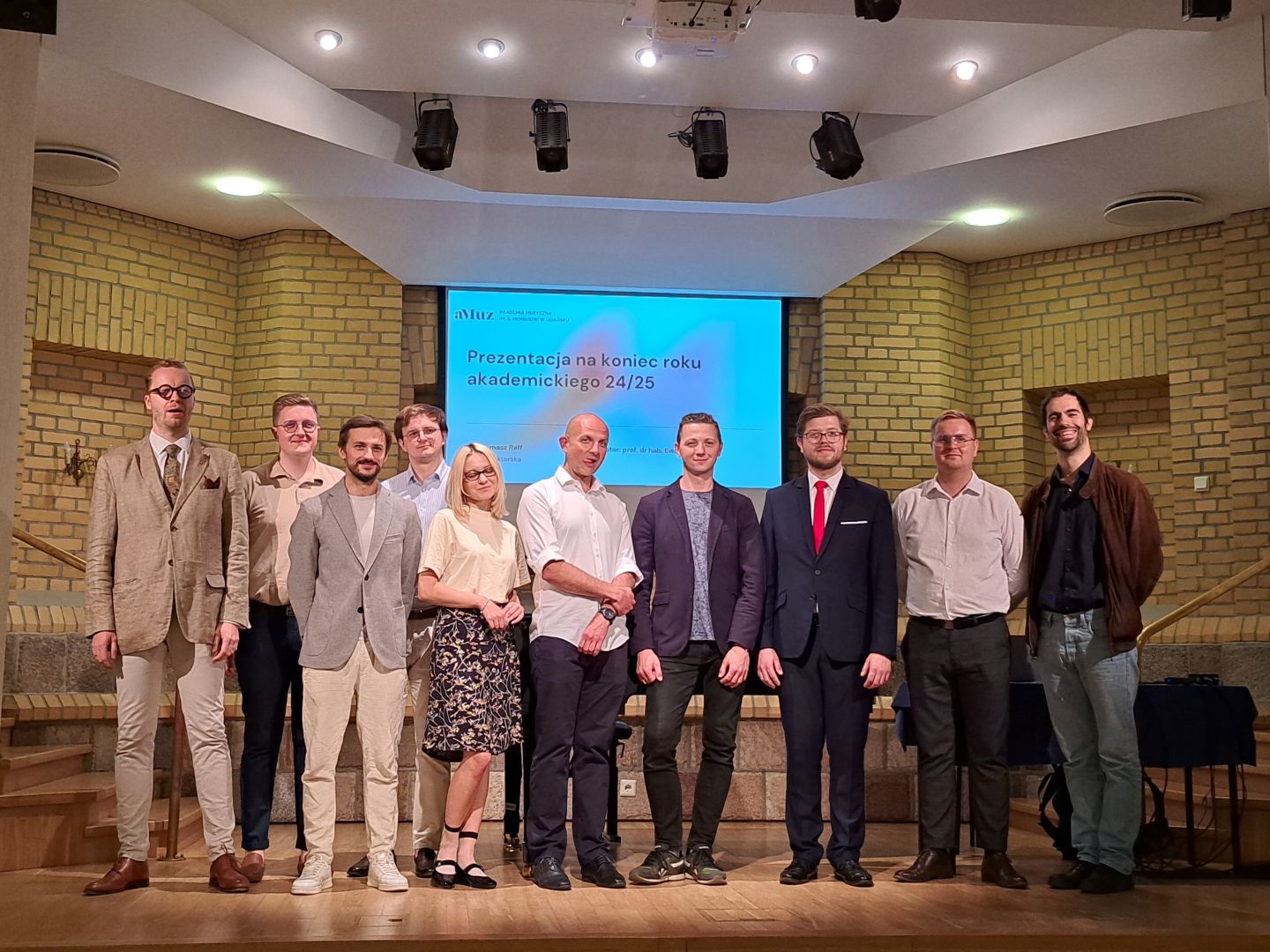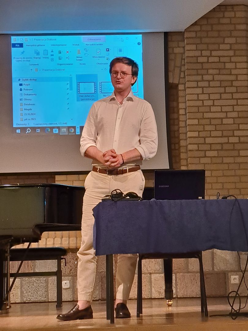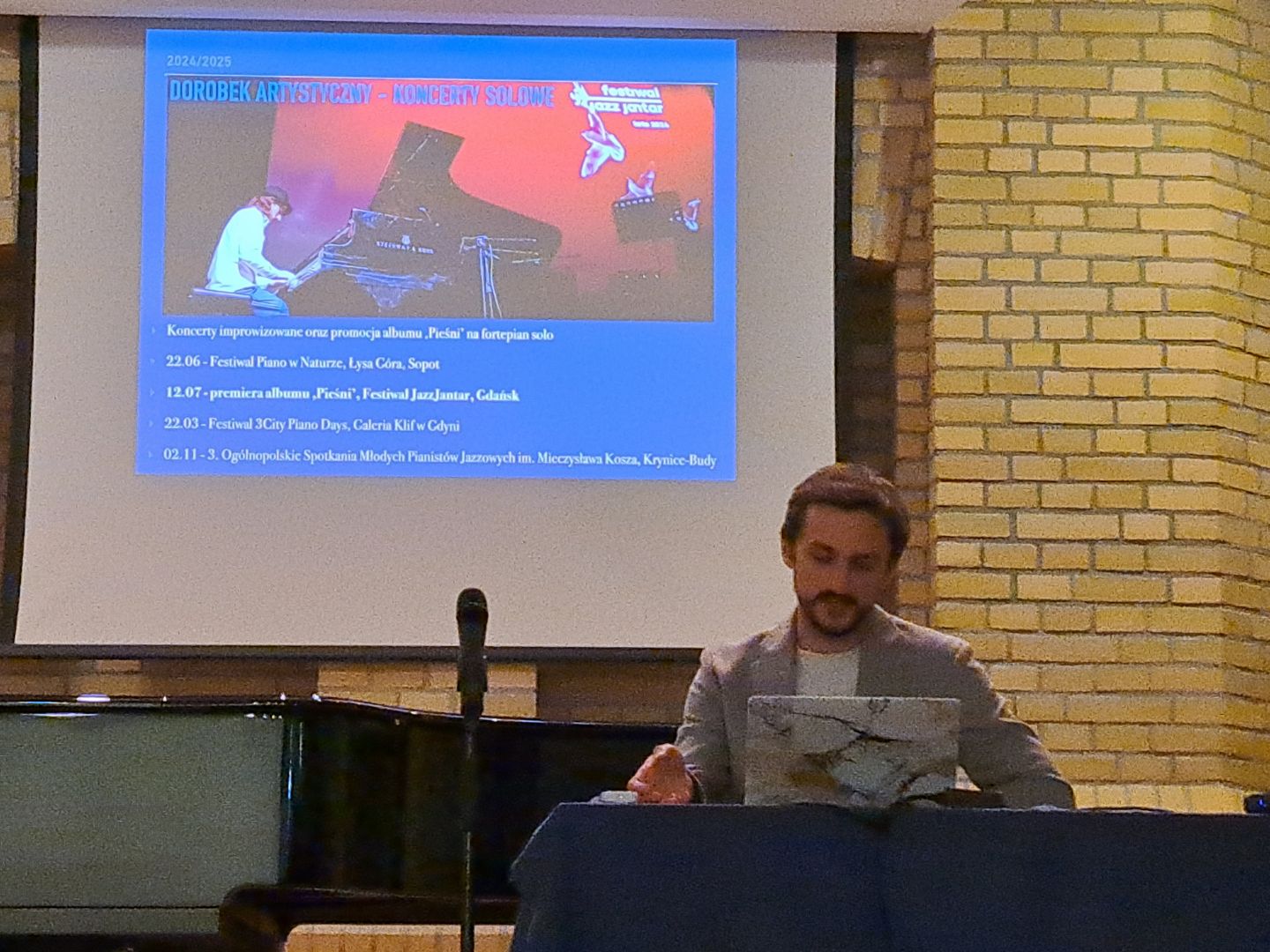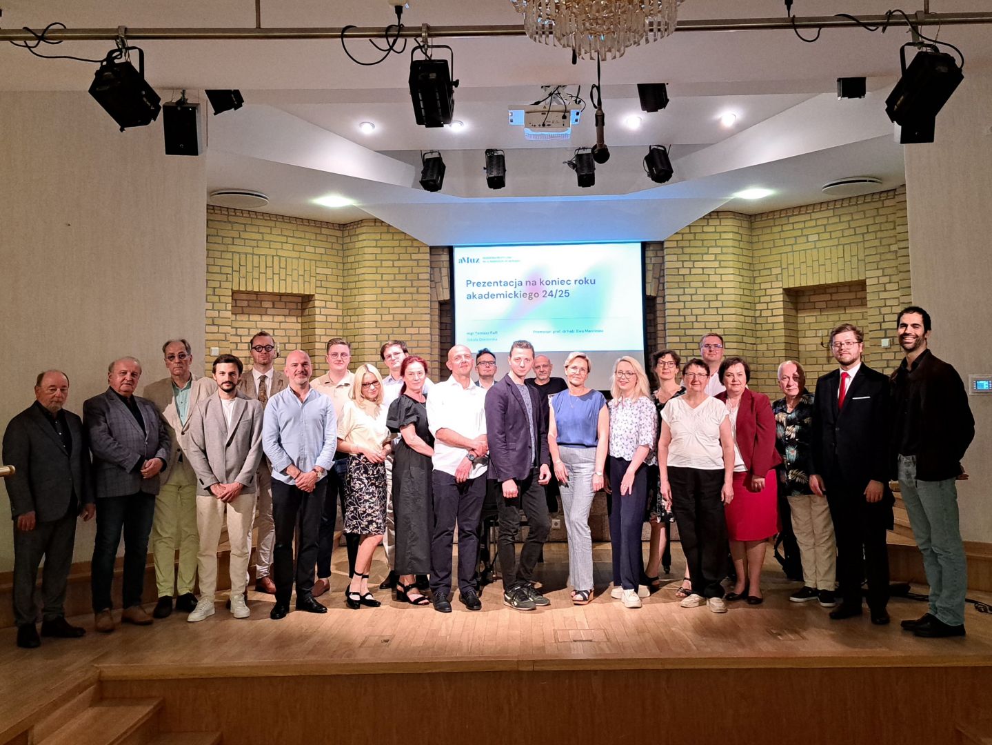 Szkoła Doktorska aMuz podsumowała intensywny rok akademicki. Przez dwa dni, 1 i 2 lipca 2025 r., 11 doktorantów podczas swoich prezentacji podzieliło się z Radą Naukową Szkoły Doktorskiej i gremium promotorów pod przewodnictwem prorektorów profesorów Marka Rocławskiego i Andrzeja Kacprzaka stopniem realizacji Indywidualnych Planów Badawczych oraz działalnością artystyczną, naukową, dydaktyczną i organizacyjną. Gratulacje dla wszystkich doktorantów: Jakuba Stefaniaka, Adama Diesnera, Dominika Kisiela, Tomasza Raffa, Jose Valente, Jakuba Borowczyka, Mikołaja Durki, Huberta Żmudzkiego, Julii Malik, Małgorzaty Priebe, Michała Bąka oraz promotorów profesorów: Pawła Zagańczyka, Andrzeja Dziadka, Leszka Kułakowskiego, Ewy Marciniec, Elżbiety Rosińskiej, Piotra Kusiewicza, Moniki Karwaszewskiej, Krzysztofa Olczaka, Krzysztofa Bobrzeckiego, Ireneusza Wojtczaka.