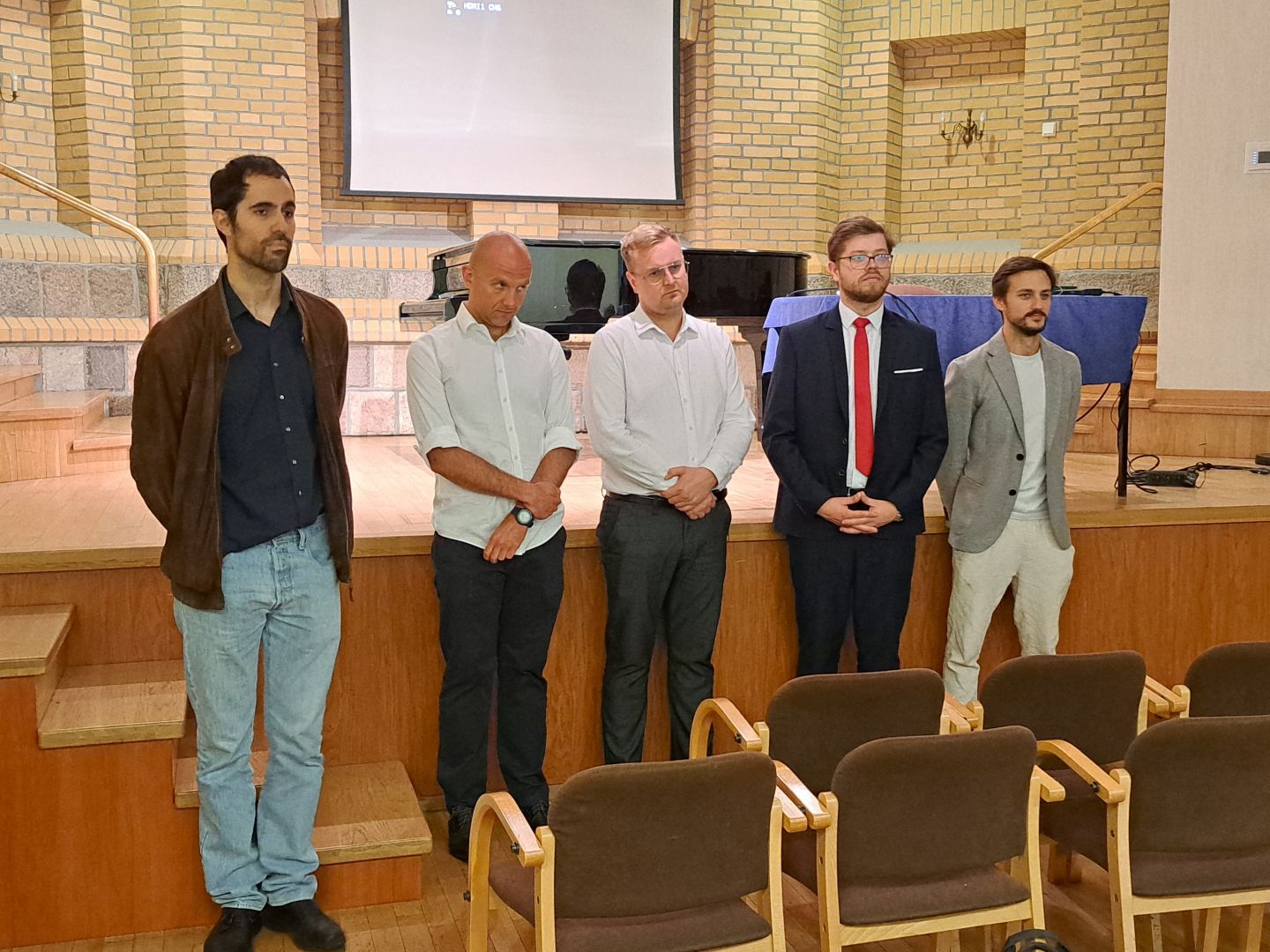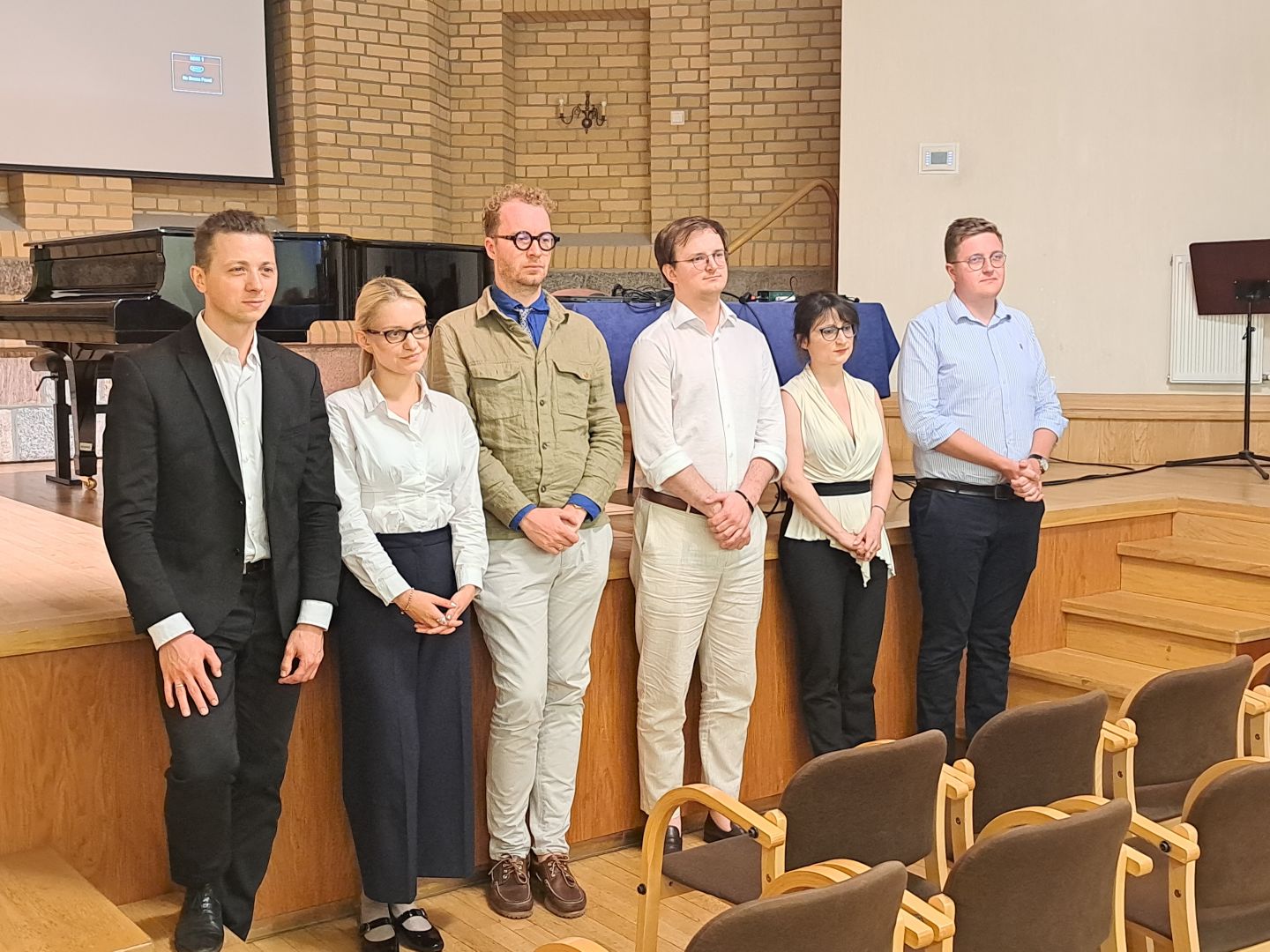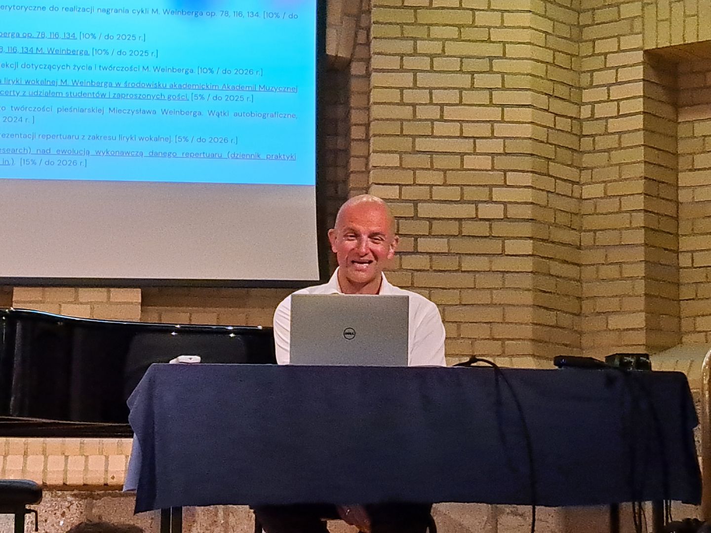 Szkoła Doktorska aMuz podsumowała intensywny rok akademicki. Przez dwa dni, 1 i 2 lipca 2025 r., 11 doktorantów podczas swoich prezentacji podzieliło się z Radą Naukową Szkoły Doktorskiej i gremium promotorów pod przewodnictwem prorektorów profesorów Marka Rocławskiego i Andrzeja Kacprzaka stopniem realizacji Indywidualnych Planów Badawczych oraz działalnością artystyczną, naukową, dydaktyczną i organizacyjną. Gratulacje dla wszystkich doktorantów: Jakuba Stefaniaka, Adama Diesnera, Dominika Kisiela, Tomasza Raffa, Jose Valente, Jakuba Borowczyka, Mikołaja Durki, Huberta Żmudzkiego, Julii Malik, Małgorzaty Priebe, Michała Bąka oraz promotorów profesorów: Pawła Zagańczyka, Andrzeja Dziadka, Leszka Kułakowskiego, Ewy Marciniec, Elżbiety Rosińskiej, Piotra Kusiewicza, Moniki Karwaszewskiej, Krzysztofa Olczaka, Krzysztofa Bobrzeckiego, Ireneusza Wojtczaka.