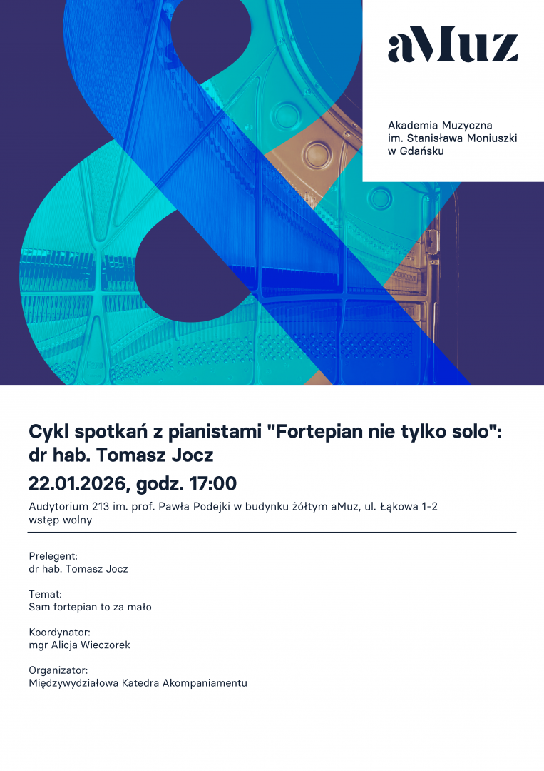 Kolejnym prelegentem cyklu spotkań z pianistami „Fortepian nie tylko solo” będzie dr hab. Tomasz Jocz, który wygłosi wykład pt. „Sam fortepian to za mało”.
