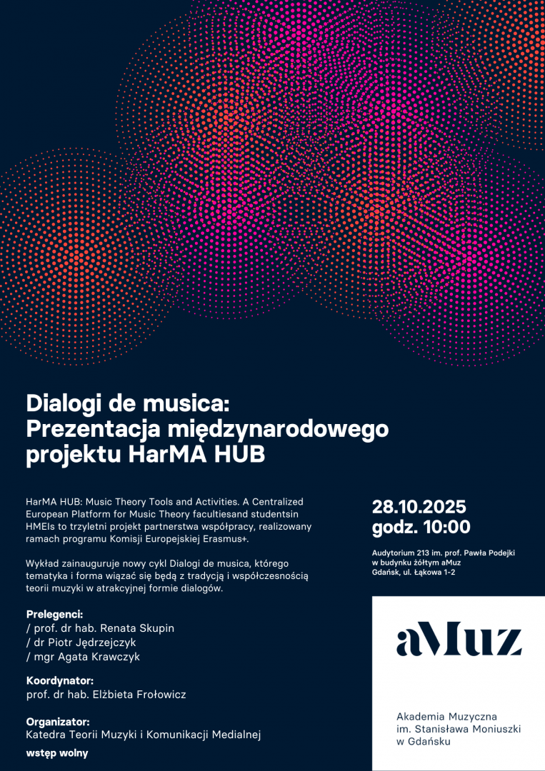 Wykład zainauguruje nowy cykl Dialogi de musica, którego tematyka i forma wiązać się będą z tradycją i współczesnością teorii muzyki w atrakcyjnej formie dialogów.