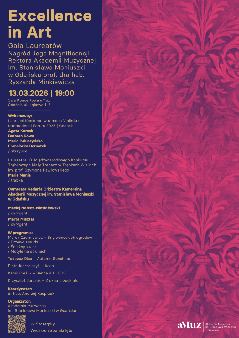 Excellence in Art to uroczysta gala poświęcona wyjątkowym młodym artystom – laureatom Nagród Jego Magnificencji Rektora Akademii Muzycznej im. Stanisława Moniuszki w Gdańsku, przyznawanych za szczególne osiągnięcia, pasję oraz rozwój artystyczny.