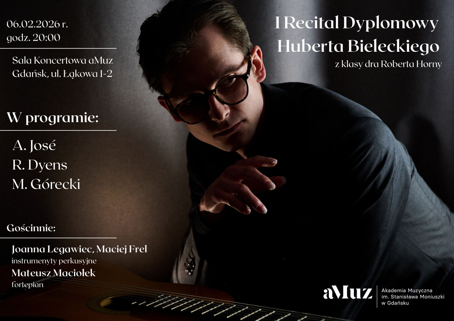 Hubert Bielecki – urodzony w Koszalinie, gdzie w wieku siedmiu lat rozpoczął swoją przygodę z gitarą. Dziś jest studentem Akademii Muzycznej im. Stanisława Moniuszki w Gdańsku w klasie gitary dra Roberta Horny.