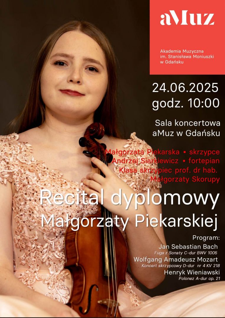 Plakat wydarzenia II Recital dyplomowy Małgorzaty Piekarskiej - skrzypce (studia II st.)
