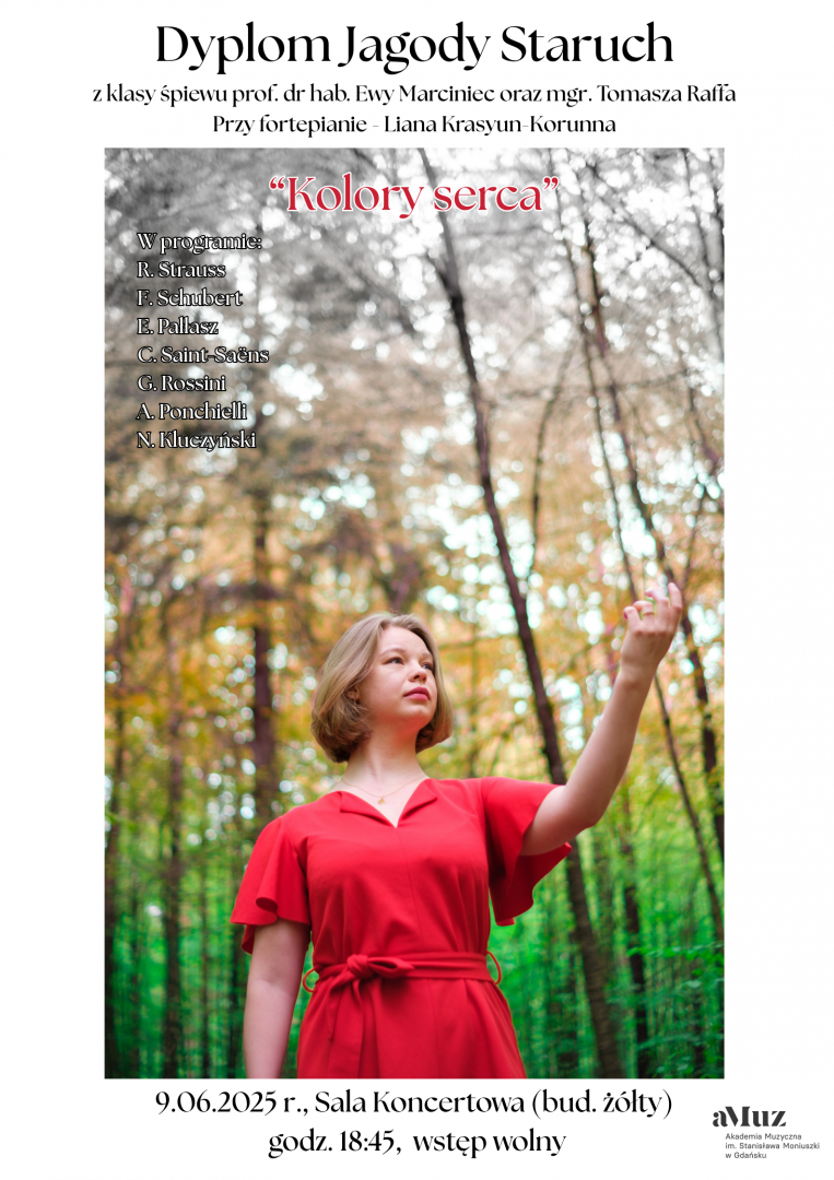 Jagoda Staruch jest studentką IV roku studiów licencjackich w klasie śpiewu prof. dr hab. Ewy Marciniec oraz mgra Tomasza Raffa.
