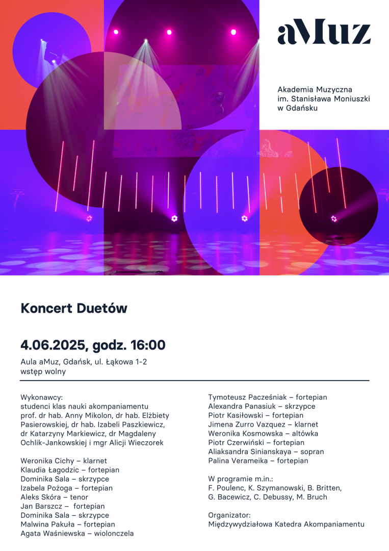 / z klas nauki akompaniamentu prof. dr hab. Anny Mikolon, dr hab. Elżbiety Pasierowskiej, dr hab. Izabeli Paszkiewicz, dr Katarzyny Markiewicz, dr Magdaleny Ochlik-Jankowskiej oraz mgr Alicji Wieczorek