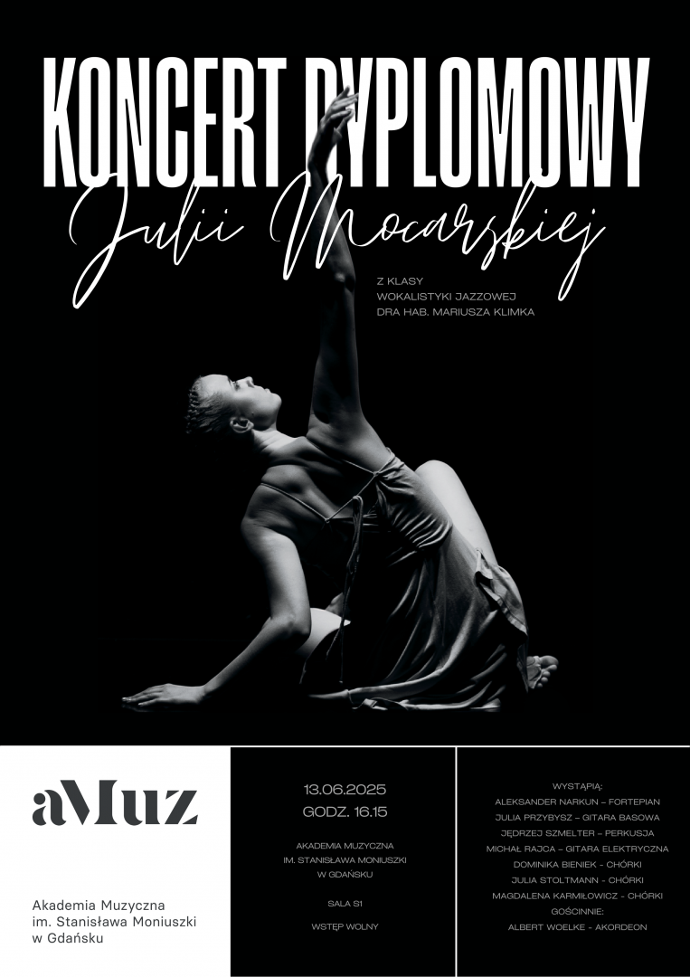 Plakat wydarzenia Koncert dyplomowy Julii Mocarskiej - wokalistyka jazzowa (studia II st.)