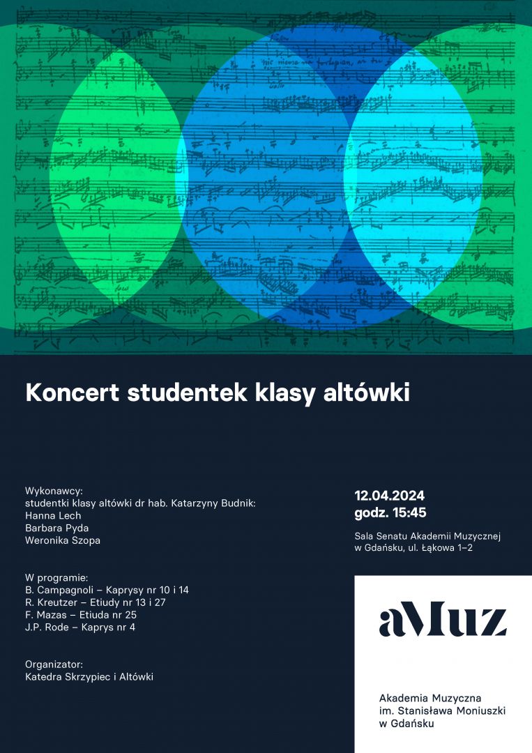 Plakat wydarzenia Koncert studentek klasy altówki dr hab. Katarzyny Budnik