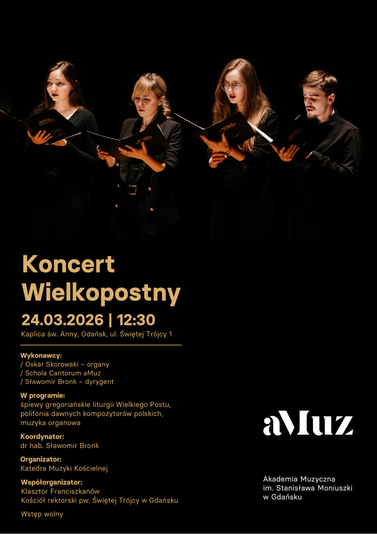 śpiewy gregoriańskie liturgii Wielkiego Postu, polifonia dawnych kompozytorów polskich, muzyka organowa