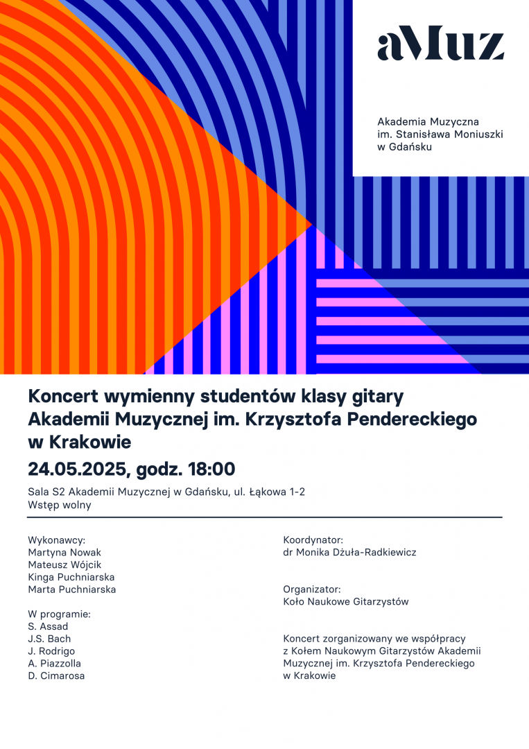 Plakat wydarzenia Koncert wymienny klasy gitary studentów Akademii Muzycznej im. Krzysztofa Pendereckiego w Krakowie