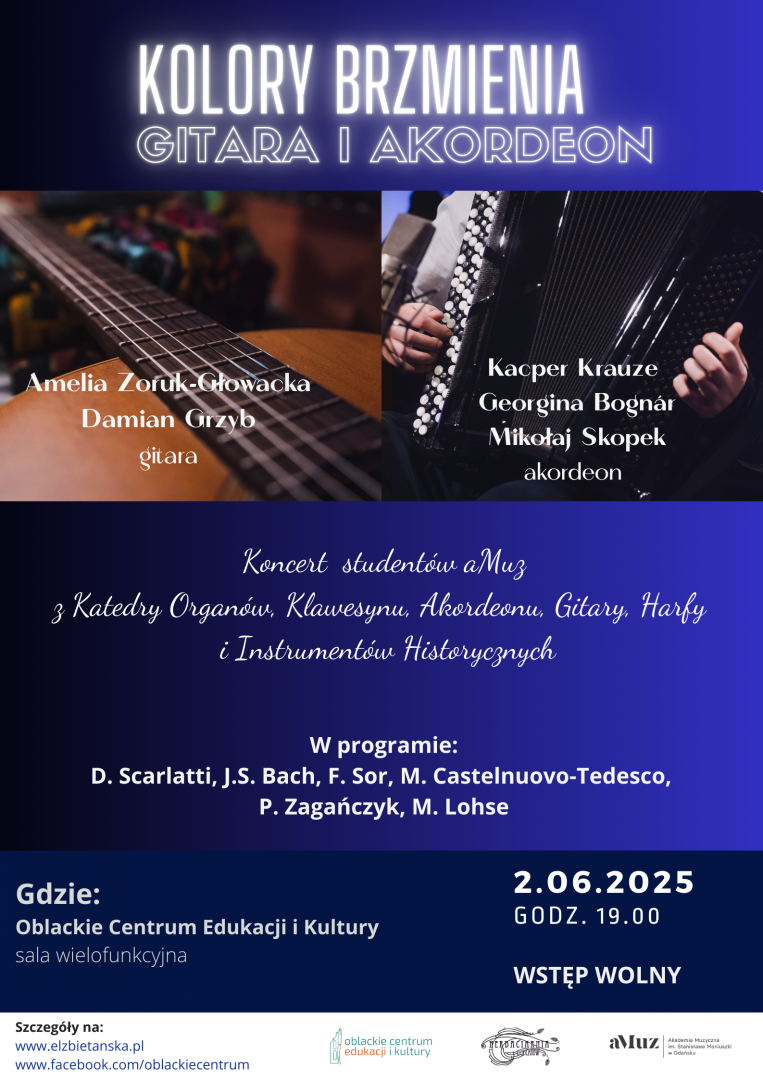 Plakat wydarzenia Koncert z cyklu „aMuz u Oblatów”: Kolory brzmienia - gitara i akordeon