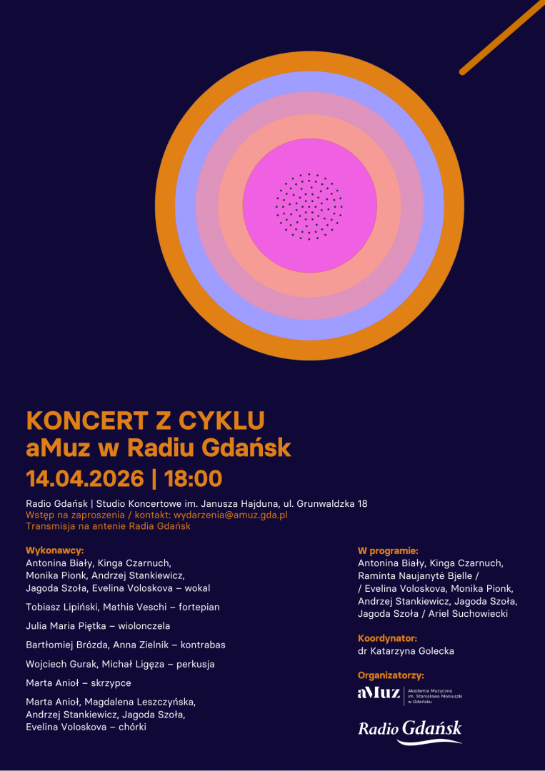 Wstęp na zaproszenia. Zainteresowanych prosimy o kontakt pod adresem wydarzenia@amuz.gda.pl. Liczba miejsc ograniczona.