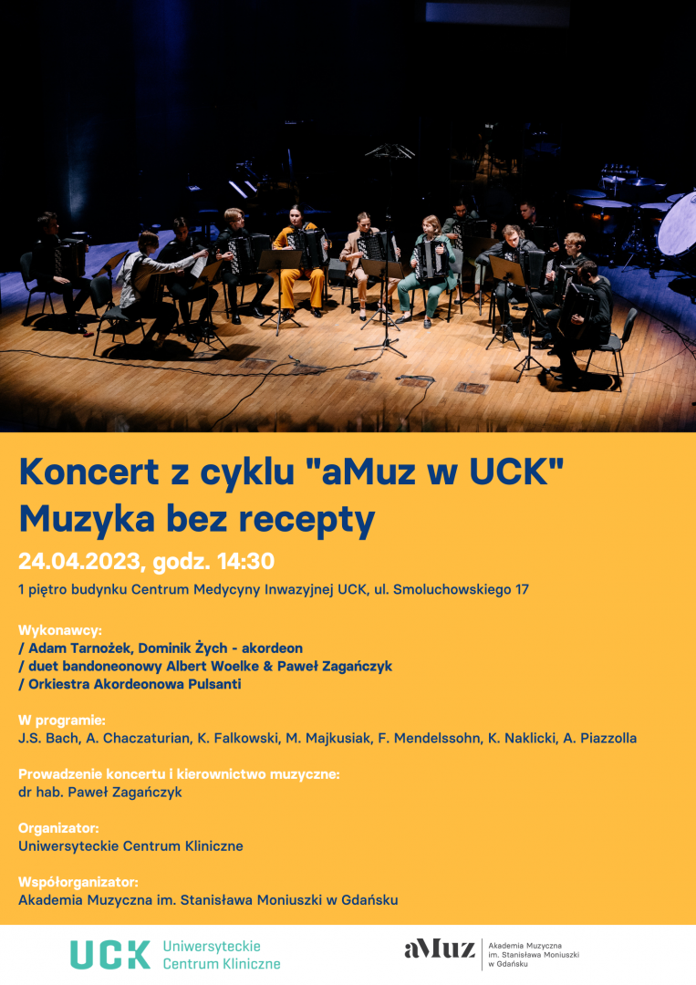 Koncert zainauguruje nowy cykl koncertów „aMuz w UCK” w wykonaniu studentów i absolwentów aMuz. Wydarzenia będą się odbywały