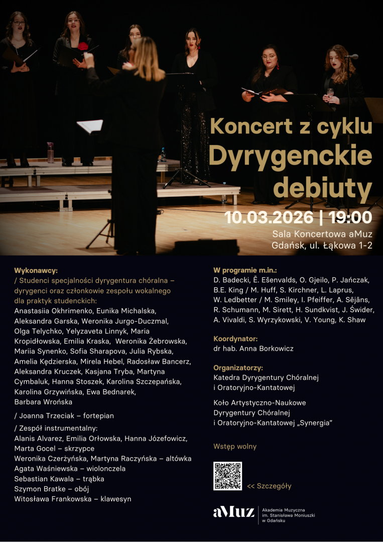 Studenci specjalności dyrygentura chóralna – dyrygenci oraz członkowie zespołu wokalnego dla praktyk studenckich: