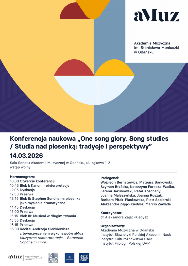 Zapraszamy na konferencję naukową „One Song Glory. Song studies / studia nad piosenką: tradycje i perspektywy” organizowaną przez Akademię Muzyczną im. Stanisława Moniuszki w Gdańsku, Instytut Slawistyki Polskiej Akademii Nauk Instytut Kulturoznawstwa UAM