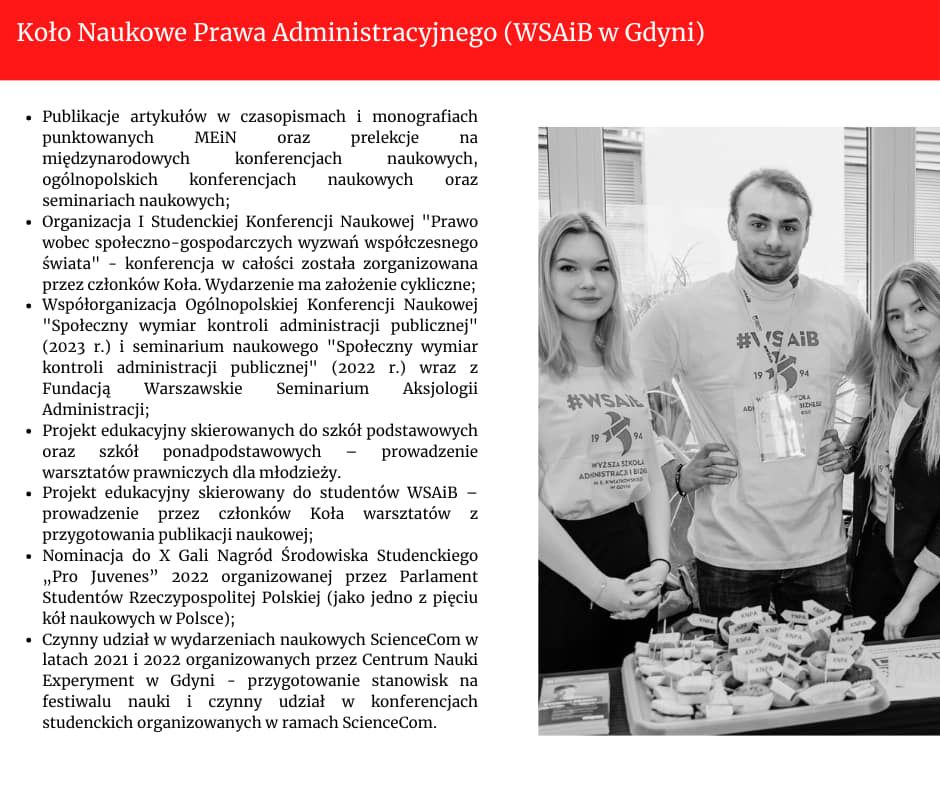 - Koło Naukowe Prawa Administracyjnego / Wyższa Szkoła Administracji i Biznesu w Gdyni
