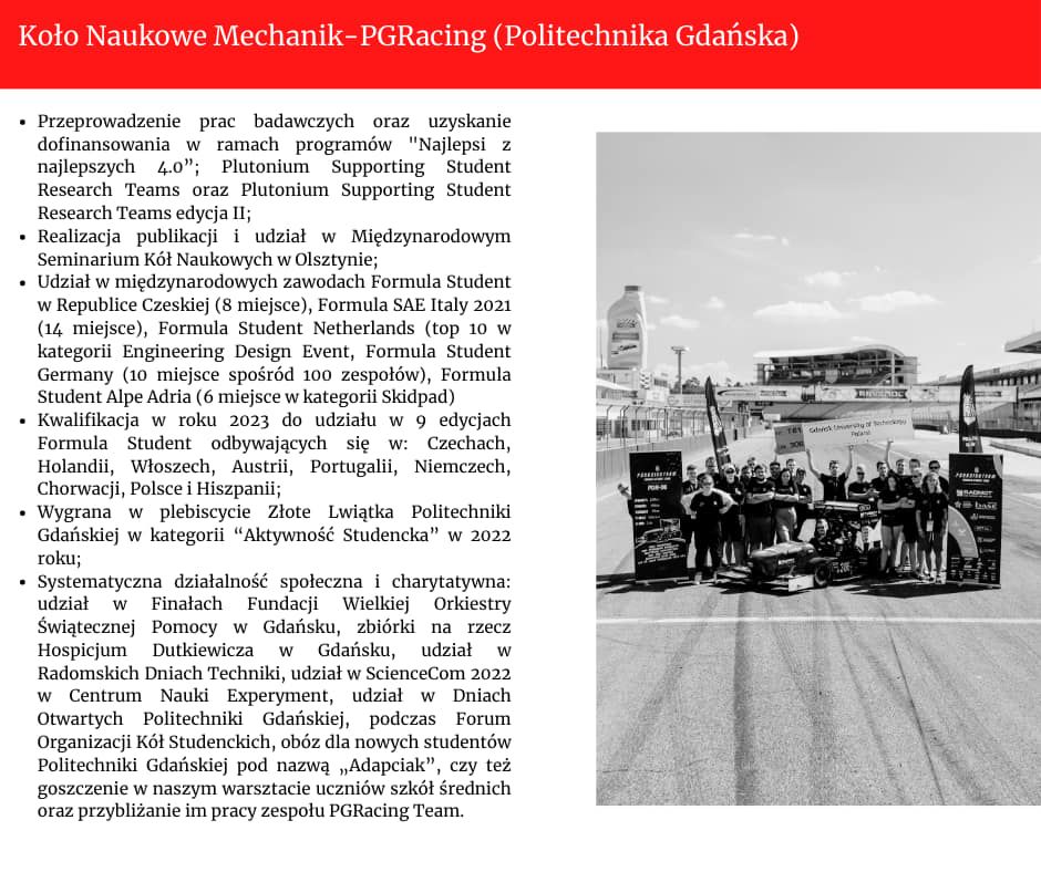 - Koło Naukowe „Mechanik” – PGRacing Team / Politechnika Gdańska