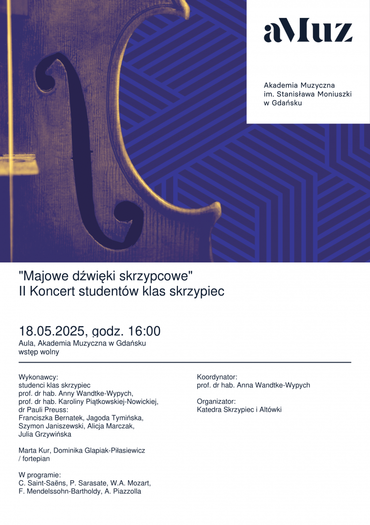studenci klas skrzypiec prof. dr hab. Anny Wandtke-Wypych, prof. dr hab. Karoliny Piątkowskiej-Nowickiej, dr Pauli Preuss: