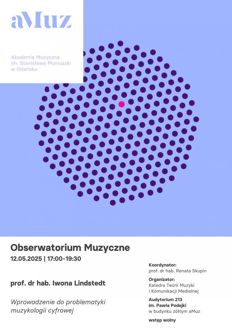 Plakat wydarzenia Obserwatorium Muzyczne: Wprowadzenie do problematyki muzykologii cyfrowej