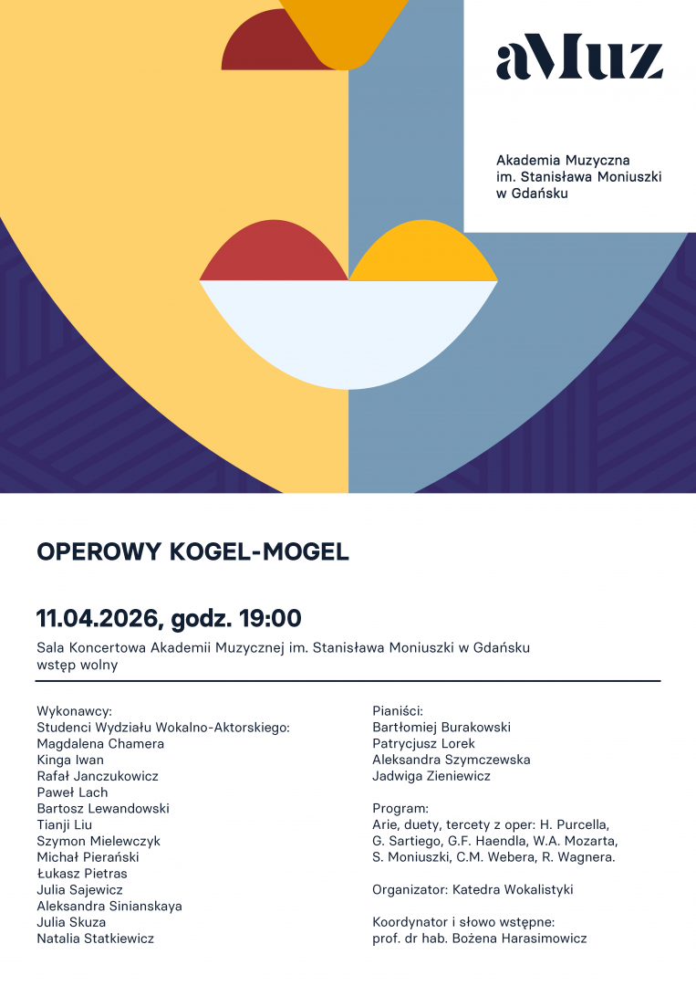 Operowy Kogel-Mogel to wyjątkowy koncert w wykonaniu studentów wydziału wokalno – aktorskiego, specjalności – śpiew solowy, którzy z pasją i świeżością sięgają po najpiękniejsze karty repertuaru operowego. W programie znajdą się arie, duety i tercety z dzieł okresu baroku, klasycyzmu, romantyzmu oraz neoromantyzmu – od stylowej elegancji po pełne emocji dramaty oraz z odrobiną humoru. To muzyczna podróż przez epoki, w której młodzi artyści zaprezentują swój talent, wrażliwość i sceniczną energię. Zapraszamy na wieczór pełen różnorodnych operowych smaków!