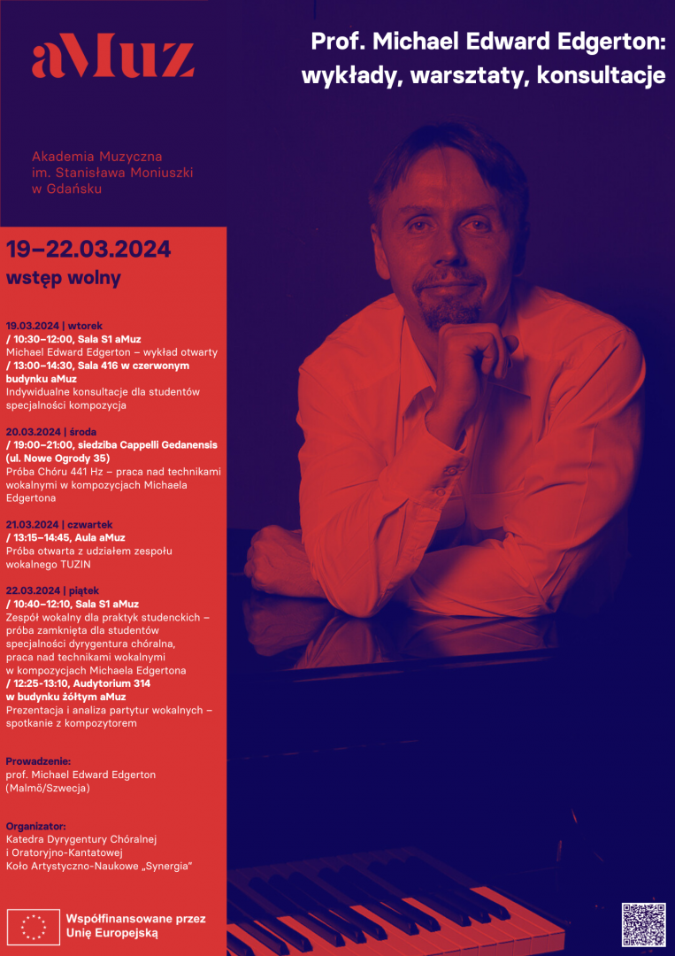 Zespół wokalny dla praktyk studenckich – próba zamknięta dla studentów specjalności dyrygentura chóralna, praca nad technikami wokalnymi w kompozycjach Michaela Edgertona - 12:25-13:10, Audytorium 314 w budynku żółtym aMuz
