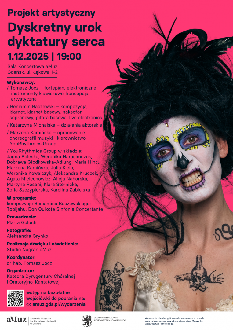 Dyskretny urok dyktatury serca to projekt balansujący na granicy muzyki, performansu i refleksji filozoficznej, badający emocjonalne spektrum ekspresji w przestrzeni akademickiej i artystycznej. To wyjątkowe przedsięwzięcie łączy różnorodne formy wypowiedzi twórczej – od współczesnej kompozycji i improwizacji, przez działania aktorskie i choreografię, po elektronikę i eksperymentalne formy dźwiękowe. W programie znajdą się dwie części: Don Quixote Sinfonia Concertante – dialog form muzycznych, narracji i improwizacji, inspirowany postacią błędnego rycerza, oraz Tobijahu – kompozycja na fortepian, instrumenty elektroniczne, klarnet, saksofon sopranowy i choreografię muzyki, będąca poszukiwaniem duchowej i cielesnej przestrzeni dźwięku, obrazu i ruchu.
