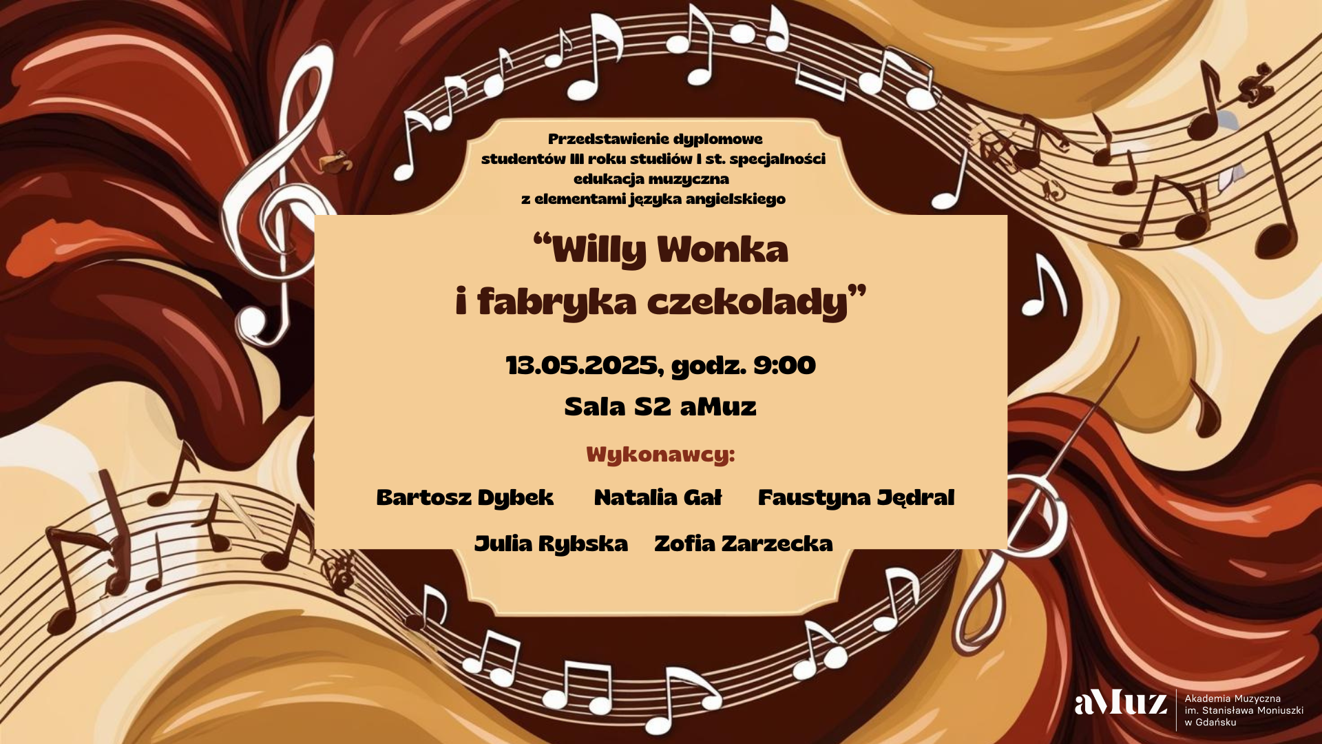 Plakat wydarzenia Przedstawienie dyplomowe “Willy Wonka i fabryka czekolady”