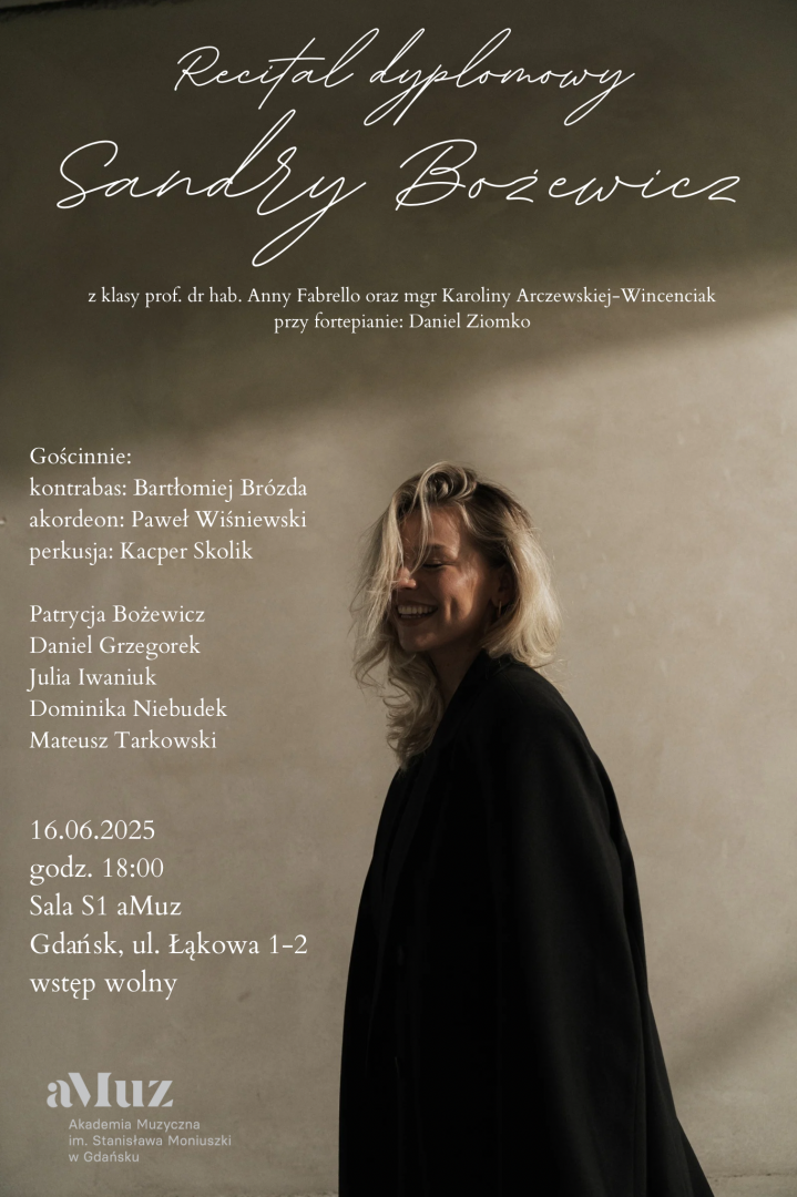 Plakat wydarzenia Recital dyplomowy Sandry Bożewicz - musical (studia II st.)