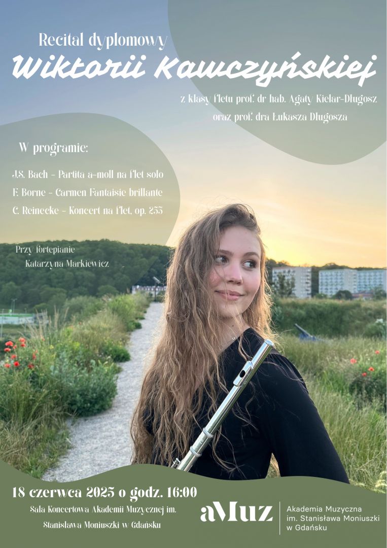 Plakat wydarzenia Recital dyplomowy Wiktorii Kawczyńskiej - flet (studia I st.)