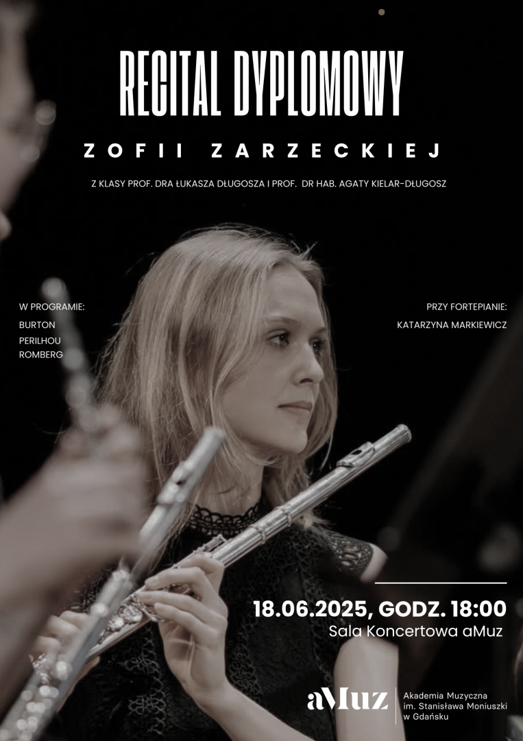 Plakat wydarzenia Recital dyplomowy Zofii Zarzeckiej - flet (studia I st.)