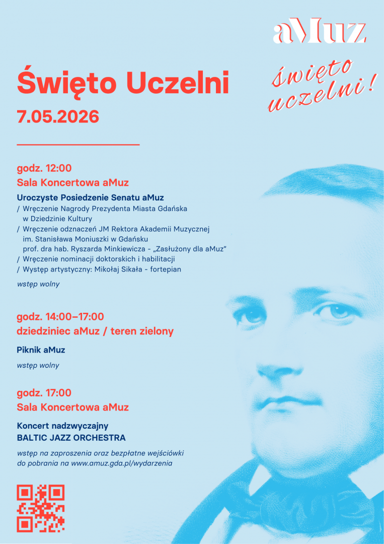 Z okazji Święta Akademii Muzycznej w Gdańsku zapraszamy na koncert Big Bandu aMuz Baltic Jazz Orchestra – zespołu, który od lat stanowi jedną z najbardziej rozpoznawalnych formacji jazzowych w środowisku akademickim. Wydarzenie to stanowi również uroczyste rozpoczęcie Gdańskiego Festiwalu Muzycznego, jednego z najważniejszych wydarzeń artystycznych regionu, integrującego różnorodne środowiska muzyczne i prezentującego szerokie spektrum współczesnej kultury dźwięku.