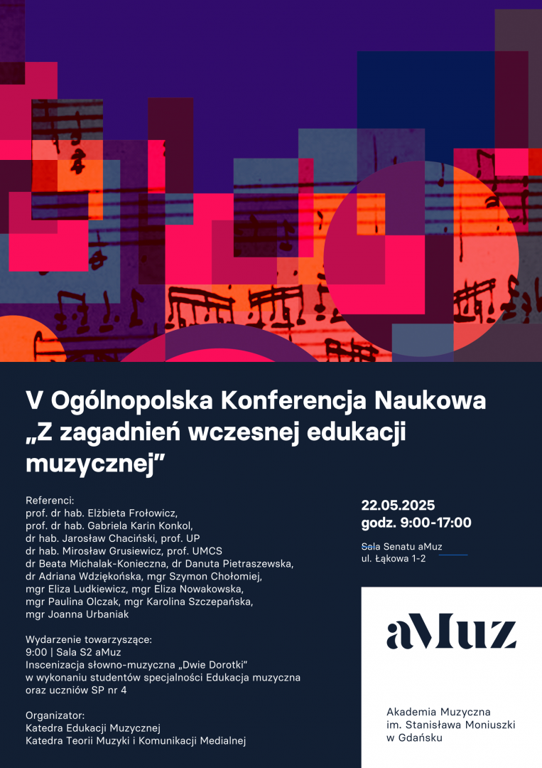 Zapraszamy do udziału w V Ogólnopolskiej Konferencji Naukowej „Z zagadnień wczesnej edukacji muzycznej”, która odbędzie się 22 maja 2025 roku w formie spotkania stacjonarnego.