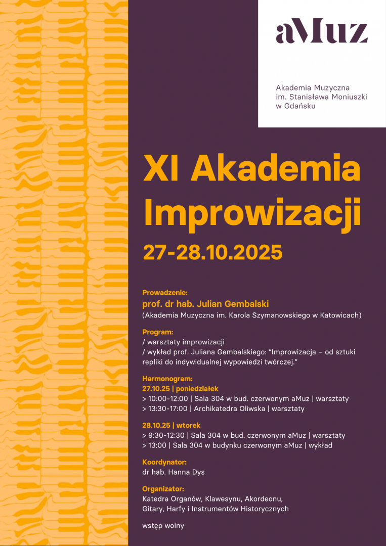 - wykład prof. Juliana Gembalskiego: Improwizacja – od sztuki repliki do indywidualnej wypowiedzi twórczej.
