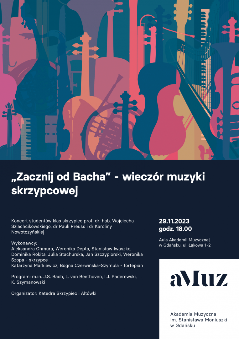 Plakat wydarzenia „Zacznij od Bacha” - wieczór muzyki skrzypcowej